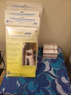Toimistolla myynnissä Filtrete Aero -suodatinkangsta. Sisälle johdettava ulkoilma kannattaa suodattaa ikkuna-aukkoon kiinnitettävällä Filtrete Aero -suodattimella. Suodatin pysäyttää siitepölyn, katupölyn ja myös merkittävän osan terveydelle haitallisista pienhiukkasista. Suodattimen erittäin korkea epäpuhtauksien erotusaste perustuu suodatinmateriaalin kuiduissa olevaan pieneen sähköiseen varaukseen. Magneetin tavoin kuidut vetävät sisälle johdettavasta ulkoilmasta epäpuhtaudet kiinni itseensä. Sähköinen varaus mahdollistaa suodattimen avoimen rakenteen: ilma pääsee hyvin läpi (pieni virtausvastus), mutta näkymättömät, siitepölyäkin paljon pienemmät epäpuhtaudet jäävät tiukasti kiinni suodattimeen. VTT:lla testattu suodatin täyttää F7-luokan suodattimilta vaadittavan erotusasteen. Pakkaus sisältää 1100 x 1300 mm suodatinkangasta ja 12,5 m kaksipuolista teippiä. Hinta 59 €/kpl.